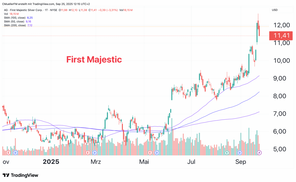 Ein bedeutendes Ereignis war die Integration der Los Gatos-Mine, welche etwa ein Drittel der Produktion beiträgt und für Synergien und Kosteneinsparungen sorgt. Zudem hält das Unternehmen solide Bestände an Silber in Form von Fertigprodukten, die nicht im Umsatz enthalten sind. Insgesamt zeigen die aktuellen Finanzzahlen und Produktionsdaten, dass First Majestic Silver trotz Herausforderungen auf einem guten Weg ist, profitables Wachstum zu erzielen. Auch hier gab es mit Kursen um 12,66 USD zuletzt neue Hoch. Die First Majestic-Aktie belohnte ihre Anleger auf 12-Monatssicht mit einem 78 % Anstieg. Das muss noch nicht alles gewesen sein.
