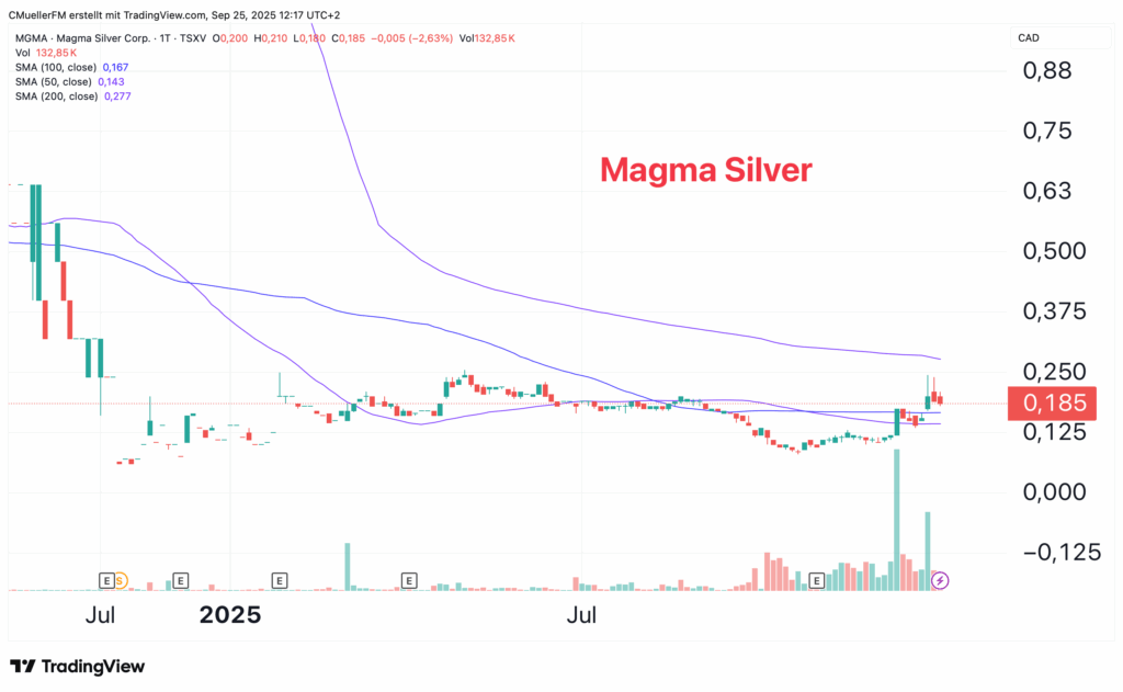 Mit der laufenden Kampagne und einer geplanten Bohrphase will Magma die Ressourcengrundlage erweitern und den Übergang in eine fortgeschrittene Entwicklungsphase einleiten. Dank hervorragender Infrastruktur, einer kooperativen Zusammenarbeit mit lokalen Gemeinden und einem erfahrenen geologischen Team sieht sich das Unternehmen für die nächsten Schritte gut aufgestellt. Für Anleger eröffnet sich damit die Chance, frühzeitig an einer möglichen Entdeckung einer bedeutenden Gold-Silber-Lagerstätte in einer der weltweit attraktivsten Bergbauregionen zu partizipieren. Die Magma-Aktie (MGMA) schoss zuletzt von 0,09 auf 0,24 CAD und ist aktuell wieder bei 0,19 CAD zu haben. Sehr aussichtsreich!